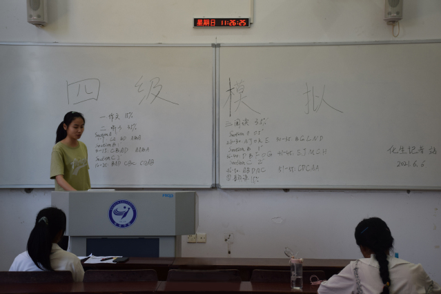 (学生通讯员 杨智群 尧璐)英语成绩已然成为就业时人才录用的标准之一,为了使同学们深入了解英语四级考试的有关事项,并在备考过程中查漏补缺,从而在不久后的四级考试中取得佳绩,6月6日上午,我院记者站于主教楼组织英语四级模拟考试,部分站员参加了此次模拟考试。