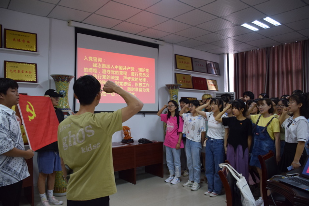 会议伊始,闵捷老师对会议流程进行了详细介绍,之后41名发展对象依次在大会上汇报了个人政治、学习、工作思想方面内容及不足之处,深刻表达了加入中国共产党的坚定决心。其后入党介绍人对各自联系培养的发展对象情况进行了介绍,充分肯定了发展对象各方面的表现和对入党工作的高度重视。在随后的投票表决环节中,正式党员逐一进行无记名投票,根据投票结果,大会决定接收41名发展对象成为预备党员。最后,党员同志引导预备党员面对党旗,举起右拳,郑重宣誓,大会在庄严的氛围中圆满结束。