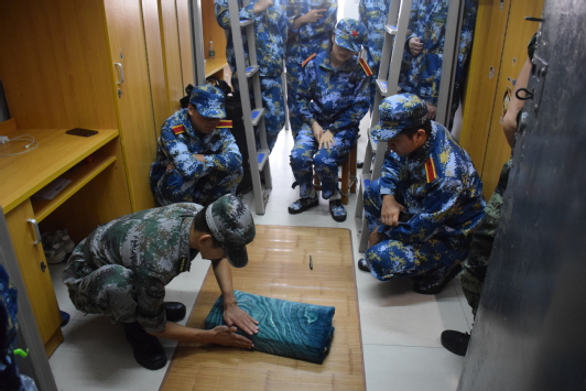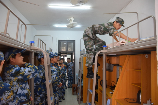 对于教官的来访,新生们显得格外热情。教官指出新生内务整理中存在的问题并耐心的加以纠正,新生围成一圈仔细聆听教官的指导,宿舍长把教官的指导认真的记录在笔记本上,以便室友一起学习。教官说到,军训期间的训练虽然辛苦,但也不能放松宿舍的内务整理,要严格按照军队的标准来整理内务,将宿舍打扫得干净、整洁。随后,教官亲自示范如何以军队的标准来处理叠被子、摆放宿舍物品、打扫卫生等内务事项,之后让同学们现场整理宿舍。教官对同学们整理过后的宿舍表示了赞扬和肯定,期望同学们继续保持,并对同学们的一些生活习惯提出了建议和指导。