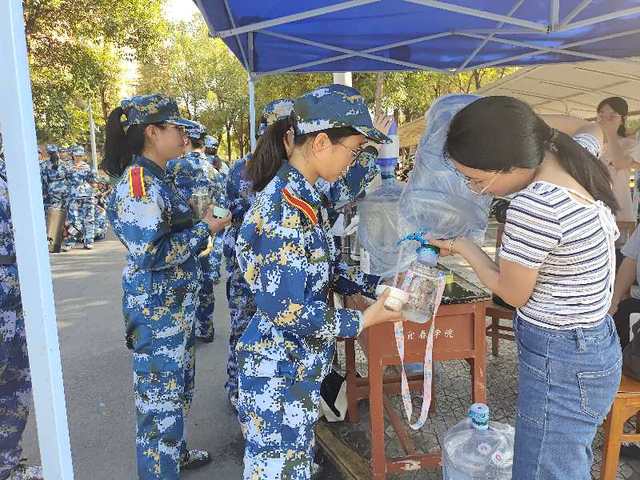 在军训休息服务点附近,刘春兰老师对参与军训服务的志愿者们进行了慰问,对他们用自己的真心、耐心和热心为军训学子提供便利表示高度赞扬。她指出,志愿服务的意义在于体现当代青年的奉献与担当精神,希望沁湖青年们积极践行志愿服务精神、参与志愿服务活动,在实践中得到锻炼与成长,增强责任意识,将志愿精神的火炬传递下去,汇聚无穷正能量。在军训休息间隙,刘春兰老师身体力行,帮助同学们端茶送水,亲切地关心问候,帮助他们解决客观因素带来的不利条件,尽显浓浓师生情。
