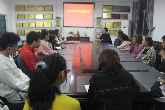 (学生通讯员 徐瑞聪 钟林娟)为深入了解少数民族学生学习生活情况,促进民族团结,10月11日晚,我院在院会议室组织召开了少数民族学生座谈会,院党委副书记陶华蕾、学生事务中心(团委)副主任梁辉出席,全院22名少数民族同学参加了会议。座谈会由陶华蕾主持。