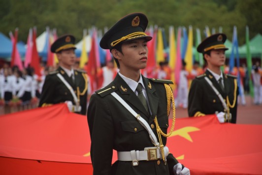 开幕式上国护队的表现给人留下了深刻的印象,但没有经历汗水的浇灌,开不出成功的花朵,国护队背后默默地付出和努力,校运开始前几个月的艰苦训练都值得我们为他们送去掌声和尊重。天空中飘扬的国旗红,既是国护队员们的一腔热血,也是对祖国无比深沉的热爱。
