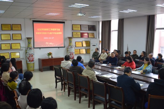 会上,黄良辉带领大家学习了党的十九届六中全会精神,主要就六中全会的重大意义、《中国共产党第十九届中央委员会第六次全体会议公报》和《中共中央关于党的百年奋斗重大成就和历史经验的决议》的主要内容作了宣传解读,重点阐述了党的百年奋斗的伟大成就、历史意义和历史经验等精神要义。他强调指出,党的十九届六中全会是在我们党成立一百年的重要历史时刻,在“两个一百年”奋斗目标交汇的重大历史关头召开的一次重要会议,对推动全党进一步统一思想、统一意志、统一行动,团结带领全国各族人民夺取新时代中国特色社会主义新的伟大胜利,具有重大现实意义和深远历史意义。全会通过的《中共中央关于党的百年奋斗重大成就和历史经验的决议》,是一篇光辉的马克思主义纲领性文献,是新时代中国共产党人牢记初心使命、坚持和发展中国特色社会主义的政治宣言,是以史为鉴、开创未来、实现中华民族伟大复兴的行动指南。他强调,全院干部教师要认真学习领会六中全会精神,更加紧密地团结在以习近平同志为核心的党中央周围,增强“四个意识”,坚定“四个自信”,做到“两个维护”,切实把思想和行动统一到全会精神上来,勇于担当为党育人、为国育才的初心使命,埋头苦干,砥砺前行,奋进新征程,建功新时代,为党的教育事业和中华民族伟大复兴作出应有贡献。