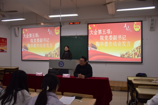开班典礼结束后,我院党委副书记陶华蕾为学生干部讲述了主题为《坚定理想信念,聚力砥砺前行》的讲座,她指出,当代青年学子,应当加强学习,提高政治站位,坚定理想信念,聚力砥砺前行,继承革命先辈的遗志,心怀责任,勇于担当,以实现中华民族的伟大复兴为己任,做新时代好青年。