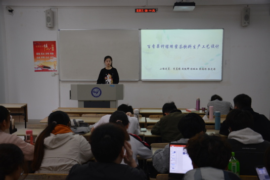 (学生通讯员 任昕 王昊昱)为巩固实践教学成果,4月29日上午,我院于二教楼举行食品工程设计大赛。比赛的形式为分组逐一展示实践成果并讲解PPT,大赛由李秋红老师和叶文峰老师主持、点评和打分,19级食品专业全体学生参加了此次比赛。