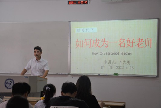 为提升我院化学师范生的职业素养,强化学生的责任感和使命感。4月26日下午,我院举办了中学教育名师专题讲座。讲座中,老师根据自身的从教经验以“如何成为一名好老师”为主题,向同学们展开详细阐述。他提出,在新时代我们要做“四有”好老师,有理想信念、有道德情操、有扎实学识、有仁爱之心。他强调,要成为一名称职的教师,首先要成为一名优秀的见习者,“十年树木,百年树人”,从细微之处入手,富有责任心的态度,才能促使我们提高自身的素质,教育好每一位学生。此次讲座的举办,使得同学们深入了解到了作为一名好老师应当具备的素质和使命,也坚定了同学们对成为一名好老师的信心和决心。还有利于推动我院思想政治建设,培养德才兼备的社会主义青年。
