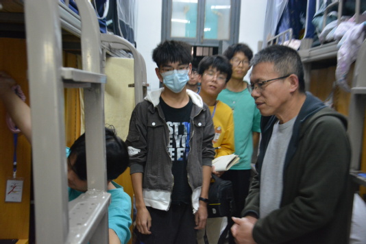 为了更好的开展排查工作,排查工作开始前,自律委员会成员被分成两组分别组织对男、女生寝室进行排查。在对寝室安全隐患排查过程中,晏细元老师和自律委员会成员对学生寝室可能存在的安全隐患进行仔细排查,并向同学们普及寝室安全知识和水电使用的规范操作等。在走访过程中,晏细元老师对寝室“天花板是否有漏水情况”、“排叉是否固定”、“生活用品是否摆放整齐”等寝室安全及卫生问题进行了检查、指导和记录。在发现有部分学生寝室存在安全隐患问题时晏细元老师向其讲述其中的危险,并及时指导他们改正。