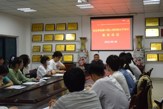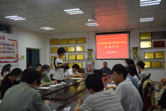 因疫情防控原因,本期培训班学员专题讨论活动推迟在5月30日晚进行,学员们围绕“如何以实际行动争取早日加入中国共产党”进行了讨论发言,表明了加入中国共产党的决心。黄良辉在主持讨论会并进行集体谈话时,从坚定理想信念、加强党性修养和发挥带头作用三个方面对学员们提出了要求,强调同学们要端正入党动机,坚定理想信念,始终在思想上政治上行动上与党中央保持高度一致。要认真学习党的基本理论和基本知识,尤其是要深入学习领会习近平新时代中国特色社会主义思想。要不断加强自身修养,提高政治思想觉悟,在学习、工作和生活中充分发挥好模范带头作用,以实际行动向党组织靠拢。