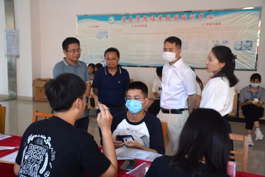 (学生通讯员 胡润苗)为了解新生报到情况,保障迎新工作的有序进行,9月5日上午,校党委委员、副校长严青松在我院党委书记黄良辉、党委副书记陶华蕾、副院长张文彬的陪同下来到我院新生报到点现场检查迎新工作,并对新生和迎新工作人员送去亲切问候。