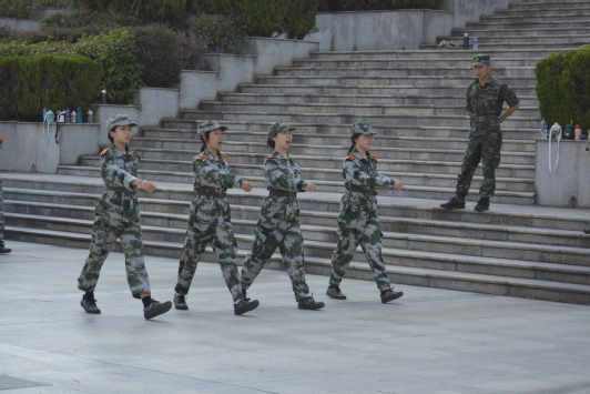 军训场上一声声整齐的口号,当渐渐放开甚至有些歇斯底里的时候,才能体会到只有真正从胸腔迸发出的吼声才是最自信,最无所畏惧的声音,那种霸气外露的呐喊昭示着信心与勇气,那股悍然正气由内心喷薄而出,更是军人应该展现的风范,应该是一个人面对困难所表现出的无畏。这才是军人,这才是军训。由齐步到正步的过程,其中转换的第一步要定很久,脚后跟会隐隐作痛。思考之后才明白,有时转换的过程非常重要,只有过度好,才能开创新的天地,才能像雄鹰一样翱翔于天际。而之前的汗水都是为了第一步,新的一步。放弃过去,勇于面对新的挑战才是少年应有的模样,也是我们永远向往的远方。