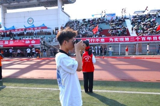 校运会比赛中,学生记者们奔波比赛场地,陪伴在运动员左右,用相机定格他们精彩时刻。同时,他们又手握笔杆,用直击内心的文字,传达出我校运动会精神,鼓舞着赛场上的同学们。他们赞扬的是运动员们坚持到底的毅力,歌颂的是运动员们挥洒汗水、奋力拼搏的精神。