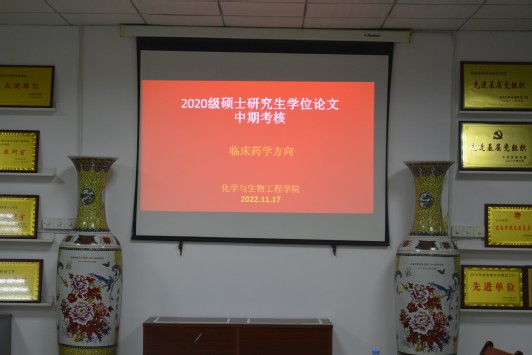 (学生通讯员 龚文磊 王莹 熊泽豪)为提高硕士研究生学位论文质量,进一步把控研究生培养质量关,11月16日至18日,我院于二教楼院会议室、理工楼虚拟仿真实验室组织开展2020级硕士研究生学位论文中期考核工作,2020级54名药学硕士研究生参加此次考核大会,部分2021级、2022级药学研究生参与旁听学习。