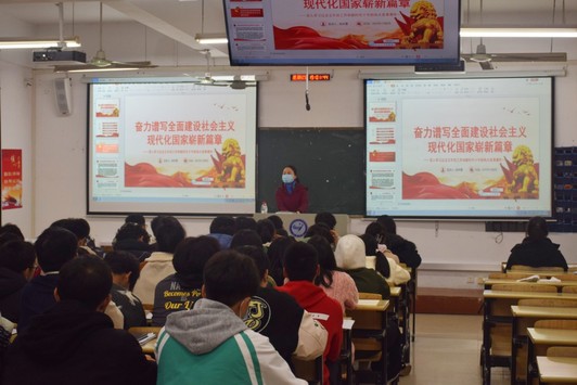 12 月 8 日晚,我院党委副书记陶华蕾以《奋力谱写全面建设社会主义现代化国家崭新篇章》为主题,主要围绕党的二十大精神就过去五年的工作和新时代十年的伟大变革内容进行专题授课。她强调,作为青年学子,要不断夯实自己的专业知识和实践技能,不断在思想淬炼和实践锤炼中提升自我,始终要坚定理想信念,牢记初心使命,谦虚谨慎、不骄不躁、艰苦奋斗,以推进中华民族伟大复兴为己任,为全面建设社会主义现代化国家的崭新篇章中绽放自己的青春光彩。
