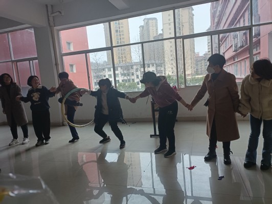 知识竞赛后,我院还组织女教工开展了“一圈到底”、“快乐吹球”、“ 轻灵毽球”等趣味活动。