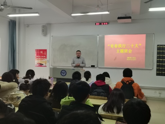(学生通讯员 胡润苗)为深入学习贯彻党的二十大精神,我院组织各班级在2月下旬召开以“青春践行二十大”为主题的班会、团日活动。