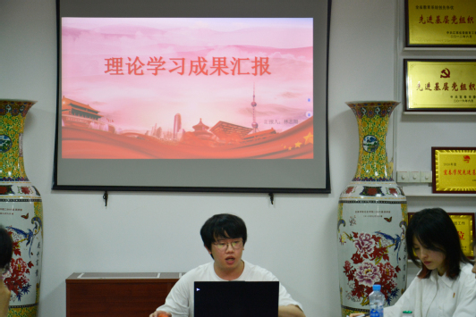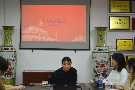 闵捷老师对7位学生党员的学习汇报进行了点评。她强调,学习成果汇报交流是提升党员党性修养的有效途径,也是学生党员、入党积极分子之间相互学习交流的有效方式。学生党支部要强化政治和教育功能,建立理论学习教育常态化、长效化制度机制,定期开展习近平新时代中国特色社会主义思想和党的基本理论学习交流活动,不断提升党员和入党积极分子理论修养水平,真正做到从思想上政治上入党,建设高素质的党员队伍。