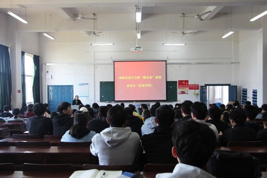 随后,宣讲人围绕樟树市招才引智“新五条”政策为主题展开讲述,讲述中还为同学们详细讲解了樟树市企业概况,其中包括企业的起源背景、取得成就、未来发展等。之后,江西司太立制药有限公司宣讲人对其公司的招才引人情况进行了详细的讲解,并欢迎同学们进行实地考察。在场的同学们积极认真聆听此次的宣讲,同时大胆提出他们的疑惑,宣讲人员也耐心细致的为他们做出全面的解答。