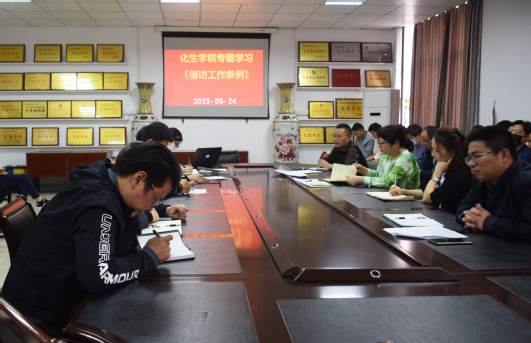 (本站讯)在《信访工作条例》实施一周年之际,按照学校工作安排,5月24日下午,我院召开了《信访工作条例》专题学习会,全院教职工参加学习会,会议由院党委书记黄良辉主持。