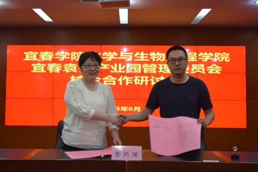 会上,举行了现场签约仪式。我院与江西百神药业股份有限公司、江西皓思生物科技有限公司、宜春银锂新能源有限责任公司、江西鑫合建筑材料有限公司、江西好实沃生物技术有限公司等园区企业分别签订了产学研合作协议和毕业生实习就业协议,达成了合作意向。