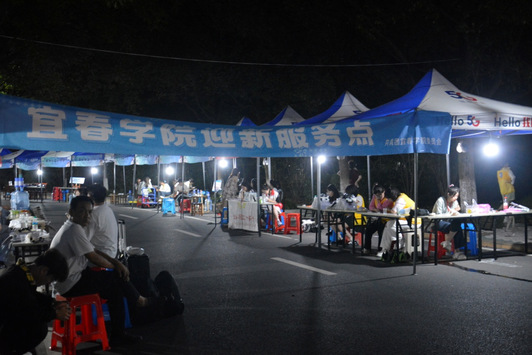 夜幕降临,仍然还有不少新生在家长的陪同下前来报到。即便是在夜晚,迎新的工作人员仍然没有松懈。新生及家长们一进校门便有工作人员进行迎接,送上准备好的小礼品并表示对新生的热切欢迎。紧接着,迎新人员带领刚来到学校的新生办理新生档案和缴纳学杂费等手续,同时帮他们搬运行李马不停蹄往安排好的新生宿舍赶。最后,在迎新人员的帮助下,新生们很快办理好入学手续并入住宿舍。家长们在报到过程中充分感受到了学院对新生的温馨关怀都放心启程回家,不少新生和家长们都对迎新人员的服务给予高度的评价。