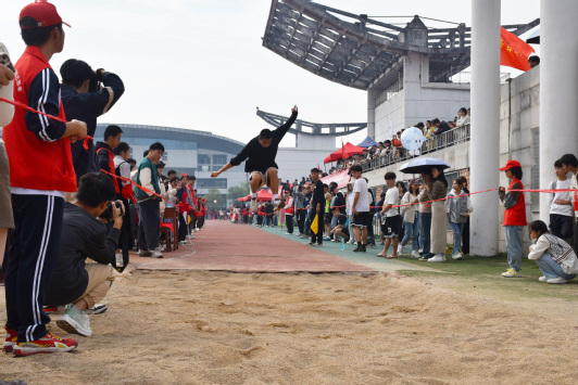 (学生通讯员 陈庆渡 瞿蓉)秋意渐浓,青春飞扬。操场上的沙坑旁运动员们正马不停蹄的热身,等待迎接属于他们的巨大的挑战。