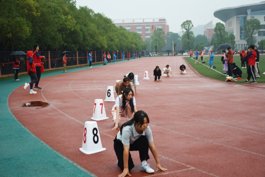 (学生通讯员 瞿蓉 郭岩)雨后天气阴沉,但湿滑的跑道阻止不了运动员们前进的脚步。操场上运动员们大步向前,书写属于自己的青春,迈向属于自己的辉煌。