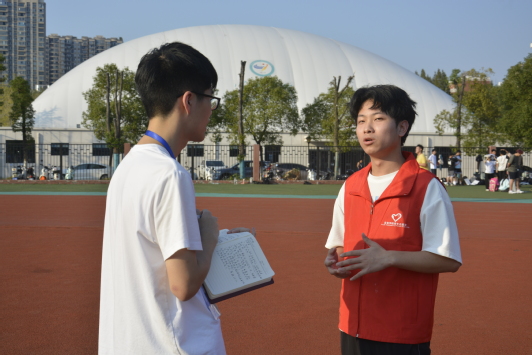“当英雄路过时,总有人坐在路边鼓掌。”在此次校运会中,也有这么一群扮演鼓掌者角色的人,他们是隐没于默默里的志愿者们。校红十字会的志愿者们一直积极参与赛事组织和服务工作,并在南田径场和跑道终点设立了救援点,配备一些医疗物资及并值班人员以处理一些突发情况和应时的能量供给等。笔者采访到英国正版365官方网站的红十协会会长刘进时,他说道:“红十字会志愿者一直本着“人道、博爱、奉献”的宗旨和“服务同学”的理念,发扬校运会的精神。”