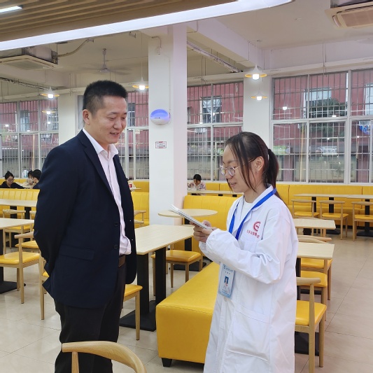 在运动会这个特殊的时期,营养师们都在幕后整装待发。“用全心准备食材,为食品健康服务”这是营养师李小勇始终如一的宗旨。据笔者了解,他们从食材源头开始把控,选用绿色优质食材,再到荤素均衡,保证蛋白质和维生素的摄入,最后做出色香味俱佳的餐食。营养师李小勇说:“我的工作任务的包括食材的验收、加工步骤的监督、成品的品尝以及摆盘和第二天菜单的定制。”但众口难调,偶尔会有师生反应说口味偏辣或者调味较重。对此,营养师李小勇表示他们在食堂设有客诉反馈平台,用于时刻关注师生等人员需求,积极采纳建议做出改善。笔者在与李小勇交谈时得知他有丰富的从事餐饮行业的经验,他说道:“我发现有许多厨师思想固化,不懂搭配,因此加强了我成为一名营养师的决心”。为更好的保证运动员有良好的身体机理奋战校运,让全校师生吃的满意和放心,他不断致力于创新饮食,创造出完美的食谱。做好膳食搭配的工作任重而道远,营养师李小勇说:“希望通过自身和食堂工作人员的努力,在校运会当头为正在奋力拼搏的运动员们时输送能量,为他们保驾护航。”