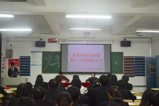 (学生通讯员 付兴月 郑梦双)为进一步加强我院宣传队伍建设,传承我院记者站的优良文化,推动团队的创新与发展,11月19日晚,我院记者站于二教楼教室召开第十八次换届大会。我院党委副书记陶华蕾、学生事务办公室(团委)副主任梁辉出席会议,校融媒体中心代表、校团委通讯团代表、学生工作通讯团代表、各兄弟教学院记者站代表、我院学生会代表、团委代表、社团工作中心代表、以及各社团协会负责人,记者站第十八届及第十九届全体成员参加此次大会。