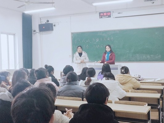 2月29日陶华蕾以第二班主任身份参加21级药学1班的安全教育主题班会,会议由辅导员甘淑芳主持。会上,陶华蕾以消防安全、交通安全、食品安全、防诈骗、反邪教及禁毒等重点内容对班级同学展开安全教育,以近年来社会及校园内发生的真实案例为切入点形象生动的阐述了“安全无小事”“生命至上”的理念。同时陶华蕾围绕爱国、奋斗和团结等关键词和同学们分享人生感悟,激励同学们厚植家国情怀、涵养进取品格。随后,甘淑芳结合本班学生情况进行了总结发言,对寝室安全隐患、学生外宿、班级学情和考风考纪等问题进行了说明和强调。