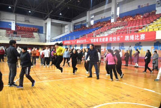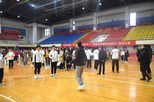 (学生通讯员 刘慧敏 欧阳昱舜)3月6日下午,由校工会主办的庆祝“三八”国际劳动妇女节“我跳绳 我健康 我快乐”跳绳比赛在体育馆举行,我院工会组织女教职工们积极参加单人跳绳、穿越隧道和十人八字跳绳三个项目。