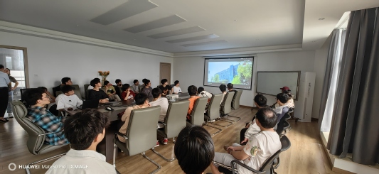接着,在公司经理的带领下,师生一行参观企业五楼展厅和企业研发实验室,通过观看宣传片以及现场讲解,了解了企业产品的生产工艺、生产流程及公司发展历程,企业方从品牌、品质、价值等多方面展开讲解,为同学们呈上了一堂生动有趣的专业课程。在深入了解江西正拓新能源企业之余也增长了同学们对企业运营与发展的认识。最后,公司经理为此次参观见习做了一个简短的分享和总结,寄语同学们要“脚踏实地做学问、积极向上展思想,方能不负青春韶华”。最后,此次活动在大家的合影留念中结束。