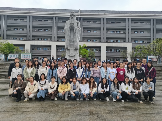 师生一行到达宜春九中后,在宜春九中负责人的带领下,同学们先对校园环境整进行了参观。接着,同学们被分为四组,分别由专业老师带着前往对应的教室听课。在听课过程中,师生们全神贯注,认真聆听,不断记着笔记,为课后的思考和总结积累材料。见习结束后师生一行进行了合影留念。