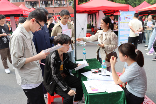 (学生通讯员 陈庆渡 付兴月)为切实做好2024届毕业生就业工作,更好的为毕业生与招聘企业搭建双向选择平台,同时也为2025届毕业生提供实习机会,4月27日,我院于大学生活动中心前广场举办2024届毕业生就业双选会,与我院专业相关的30多家用人单位应邀来现场招聘。我院党委书记黄良辉、党委副书记陶华蕾来到现场指导协调工作,我院学生事务中心(团委)副主任梁辉及2004届毕业生带班老师指导2024、2025届毕业生积极参加现场应聘。