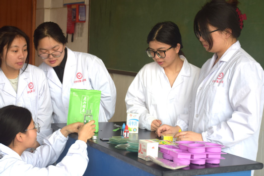 为培养同学们的专业素养,提升同学们团结协作能力,4 月 25 日,我院于人文楼教室举办药学产品设计及推介大赛,大赛由我院专业教师韩成云、尹培培、肖道安和闻永举担任评委,22 级药学专业全体学生参加。两个班的同学分为15 组参加比赛,每组 6 人左右。大赛伊始,各组主讲人依次上台将他们制作的产品向老师们展示,演示PPT 结合所学知识介绍产品的原料、用途和功效并播放产品制作过程视频及宣传视频,创意巧妙,方式新颖。最后,老师们根据学生设计的产品,从专业角度出发,对产品的价值,实用性和存在优势等方面进行全面评价。同时,老师们还就产品存在的不足提出建议。