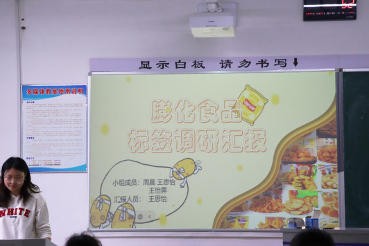 为了提高同学们对食品标签的了解和食品安全意识,4月25日,我院于二教楼教室开展食品标签调研结果展示课程,该课程由我院食品质量与安全专业负责人叶文峰点评,22级食品质量与安全班级全体学生参与。课程伊始,叶文峰向同学们讲述食品标签调研的重要意义。随后,同学们分组并派出代表进行本小组的食品标签调研结果展示及讲解。同学们通过展示PPT的方式,讲解自己发现的食品标签存在的主要问题,并提出自己的改进建议。最后叶文峰耐心地指出同学们存在的问题和改进建议,她强调同学们可以相互借鉴取长补短、共同进步,并表达对同学们的肯定。
