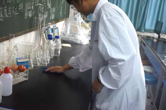 为加强学生对实验室操作的安全意识,帮助学生深入理解绿色化理念,4月15日至4月18日我院在理工楼实验室组织开展实验室绿色化、安全化改造活动。活动期间老师给同学们讲解关于绿色化改造和安全化改造的重要性,指出了实验室绿色化、安全化改造的方向和仪器的正确使用和处理方法。同学们在老师的指导下,进入到实验室有序的对实验室进行劳动清理,明确分工后开展对实验室进行系统的清洁。