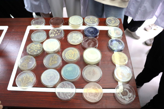 为激发同学们对于微生物的热爱,调动同学们的创新积极性,同时培养团队协作能力,4月26日,化学与生物工程院于理工楼教室举办微生物与免疫实验室举办第二届微生物艺术大赛。本次大赛由我院专业教师姜琼担任指导和评审,22级生物工程专业全体学生参加比赛。大赛伊始,姜琼就微生物艺术创作原理进行详细讲解,并强调微生物培养基制作及细菌培养过程中的注意事项。22生物工程专业同学们从历届大赛的优秀作品中获取灵感,理清创作思路,各组队员有序进行固、液培养基的制作,对目的菌株进行扩大培养,在培养皿中绘制出精美微生物的图案。最后由姜琼就学生们所制作的微生物图案进行评选。
