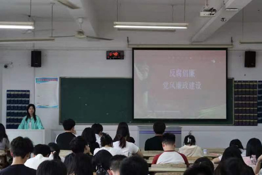 (学生通讯员 彭翔)为加强学生党员的廉洁教育,引导学生党员坚定理想信念,增强学生党员的廉洁意识和抗腐蚀能力,5月29日,我院于二教楼教室开展学生党员廉洁教育专题党课。本次党课由我院学生党支部书记闵捷担任主讲,我院全体学生党员参加。