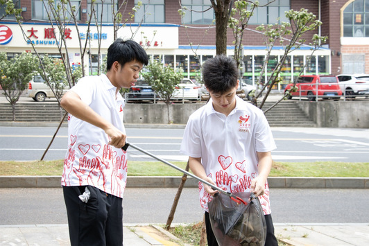 在社区服务中心工作人员的引领下,实践队成员们迅速集结,手持垃圾夹、垃圾袋等清洁工具,化身为一支支绿色的“守护者”。他们或弯腰拾捡,或细心清扫,每一个动作都透露出对这片土地深沉的爱与尊重。街道上,那些被遗忘的纸屑、烟蒂、塑料瓶,在实践队成员们的努力下,一一纳入了它们应有的归宿,街道重焕新生,仿佛每一块石板都在诉说着重生的喜悦。