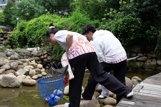 同时,“河小青”活动实践队也正如火如荼地开展社区观赏湖周边的垃圾清理工作。观赏湖岸边部分垃圾陷进淤泥,给清理工作带来了一定难度。但队员们没有丝毫退缩,他们手持垃圾钳和捕捞网,仔细清理着湖面上漂浮的垃圾以及陷进湖边淤泥里的杂物。在队员们的共同努力下,观赏湖周边环境得到了显著改善。