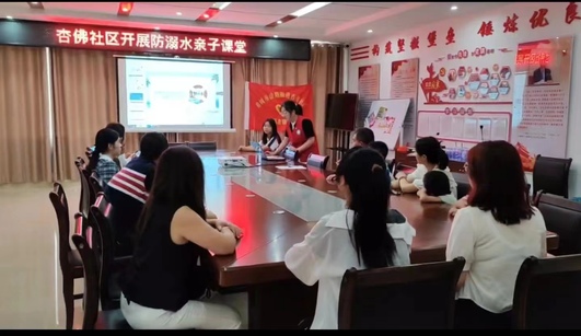 活动当天,团队成员们身着统一的志愿者服装,利用PPT在社区居委会开展防溺水宣传教育。教育内容涵盖了意外溺水如何自救、他人溺水如何施救、防溺水安全倡议等多个方面,以视频、文字、图片及实验相结合的形式,生动直观地展示了溺水事故的严重性和防范措施的重要性。
