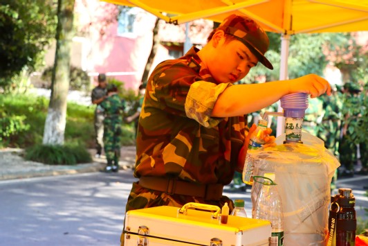 军训期间,不管烈日炎炎,优秀的志愿者们陪伴大家军训从开始到结束。他们在训练场旁搭建帐篷,给同学们提供阴凉的地方,在同学们和教官缺水时,他们及时为大家提供水源补给,当遇见身体不适的同学时,志愿者们及时为他们提供帮助,带他们到阴凉地方休息,进行急救。训练场上,同学们挥洒汗水,飞扬青春;训练场下,志愿者们执着相伴,砥砺共行,他们共同勾勒出热血青春的画卷。在“奉献 友爱 互助 进步”精神指引下,志愿者们积极参与社会实践,体味奉献的真谛,展现青春绚丽色彩。