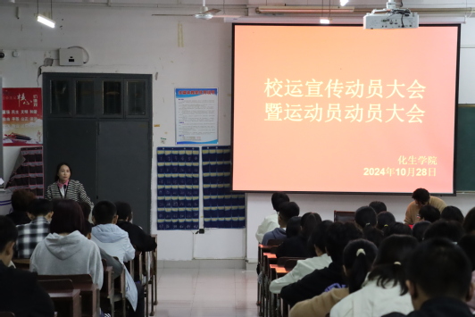 (学生通讯员 黎荣 陈心如)为迎接即将开展的宜春学院第二十五届田径运动会,充分调动运动员积极性,增强我院记者站和学生会干事士气,10月28日晚,我院于人文楼教室召开校运宣传动员大会暨运动员动员大会。我院党委副书记陶华蕾、学生事务中心(团委)副主任梁辉出席并发表动员讲话,该院全体运动员、学生记者站和学生会全体成员参加此次会议。