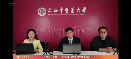 宣讲会伊始,上海中医药副校长舒静介绍了上海中医药大学的整体情况,着重在研究生办学宗旨、培养方案、就业去向及落户政策等方面进行介绍;上海中医药大学研究生院常务副院长沈岚着重分享了2025年的招生专业及报考方向。