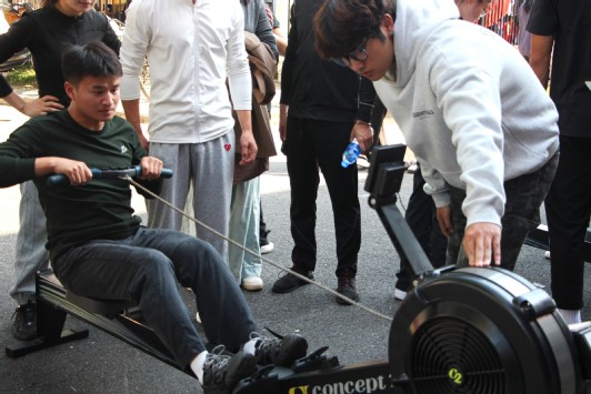 (学生通讯员 黎荣 陈心如)校园的天空澄澈如宝石,阳光倾洒。10月31日下午,一场别开生面的教工接力男女混合组龙舟测功仪接力赛吸引了所有人的目光。