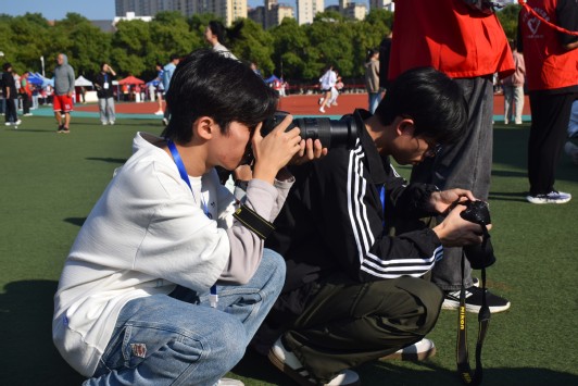 在校运赛场的每一个角落,都有时刻传递校运情报的工作者,他们就是我们熟悉的学生记者。在校运会紧张激烈的比赛中,学生记者们用相机快速捕捉着每一个精彩瞬间,见证与记录运动员们每一次成功的冲刺、每一次跳跃的飞跃、每一次紧密的配合,在校运第一线,化生记者站摄影部部长郭岩感慨道:“我们不仅要记录下比赛的结果和精彩瞬间,更要深入采访运动员背后的故事、比赛前的运动员们的训练经历,力求让同学们第一时间看到最真实的校运报道。学生记者们会继续以自己的方式在第一时间用文字和镜头记录下更多比赛场上的精彩瞬间呈现给每个同学。