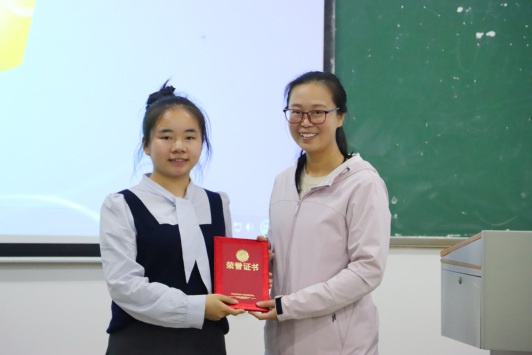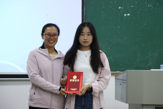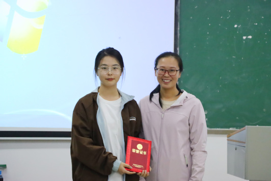 比赛伊始,主持人周倩介绍担任大赛评委的老师和学生骨干。大赛正式开始后,参赛选手依次上台以PPT的形式从自我认知、环境分析、实现目标计划、目标调整评估等方面进行详细的阐述。随后,评委们根据每位选手表现情况进行打分。打分结束后,评委尹培培对选手们的表现及作品进行细致点评,指出大家存在的问题并提出相应建议,同时对大家表达了实现职业梦想的美好祝愿。经过激烈的竞争,刘珍荣获一等奖,卢艺荣获二等奖,王楠荣获三等奖。尹培培为获奖同学进行了颁奖并合影留念。