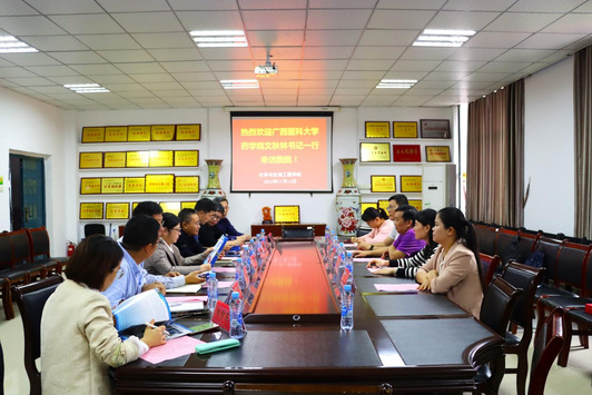 (本站讯) 11月14日下午,广西医科大学药学院党委书记文秋林带领院办主任李福森、中药学教研室主任朱丹等一行5人来访我院,就学科专业建设、基层党建工作进行考察交流。我院党委书记黄良辉、院长郭孟萍、副院长付建国等与客人进行了座谈交流。