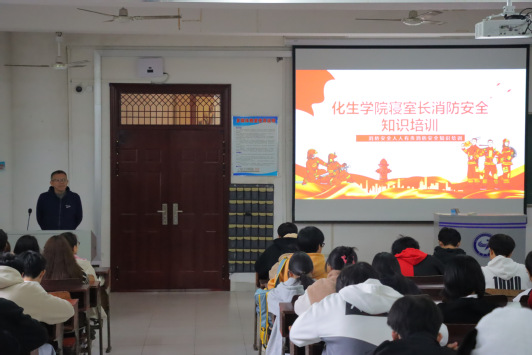 (学生通讯员 刘慧敏 何福乐)为加强学生消防安全意识,提高学生消防应急处理能力,11月20日中午,我院于人文楼教室开展寝室长消防安全知识培训会。此次会议由我院专职辅导员晏细元主持,该院22、23、24级全体寝室长参加。